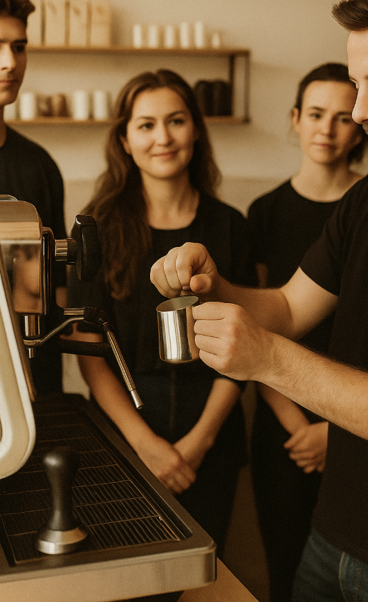 Meneer Zwarts biedt barista trainingen voor horecateams. Niet om van je team volleerd koffiemeesters te maken, maar om ervoor te zorgen dat elke koffie klopt – van extractie tot melk. Meneer Zwarts traint jouw team: